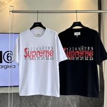 Maison Margiela Tシャツは、ホワイトとブラックの2色展開で、どちらも大胆なロゴをフィーチャーしています。数字のプリントがロゴの周りに配置され、グラフィカルでモダンな印象を与えます。赤と黒で強調された「Supreme」のロゴは、目を引き、ストリート感を強調しながらメゾン マルジェラ Tシャツ